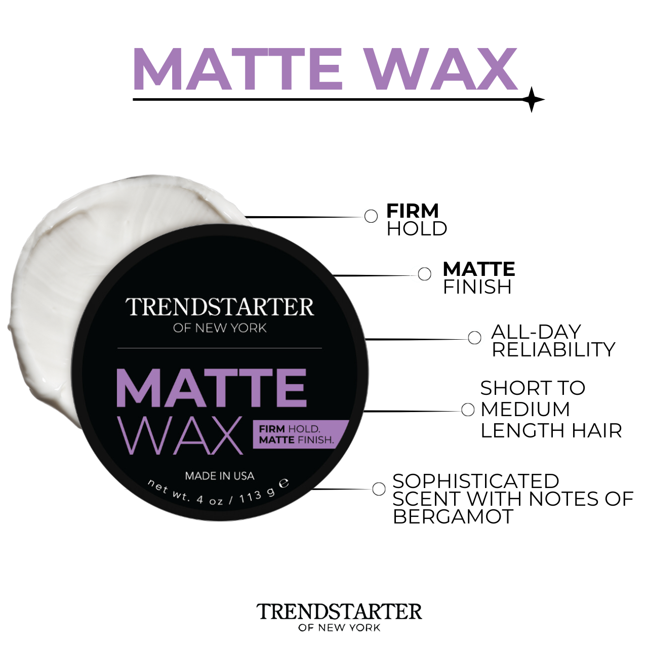 TRENDSTARTER's Matte Wax is for those looking for a reliable product with firm hold, a matte finish, and the ability to maintain a style throughout the day.