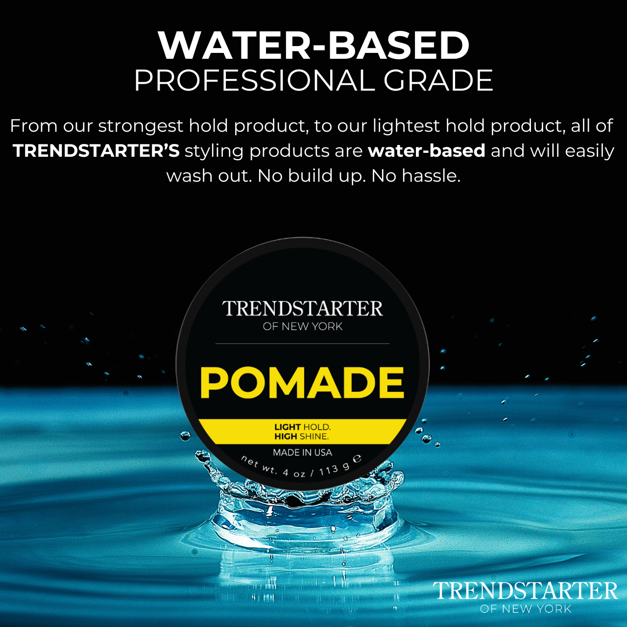 TRENDSTARTER's Pomade is for those looking for a reliable, flexible hair product with a light hold and HIGH shine.